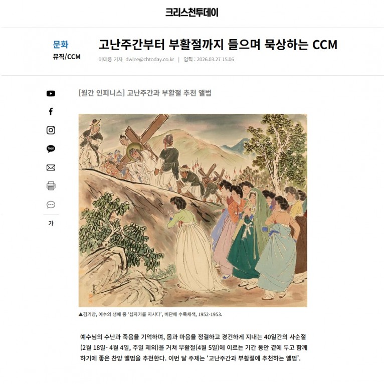 [기획기사] 고난주간부터 부활절까지 들으며 묵상하는 CCM(크리스천투데이)